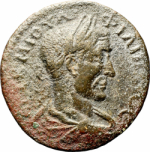 laureate, draped and cuirassed bust of Philip I, right, seen from rear