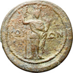 Tyche, turreted, standing facing, holding sceptre and cornucopia