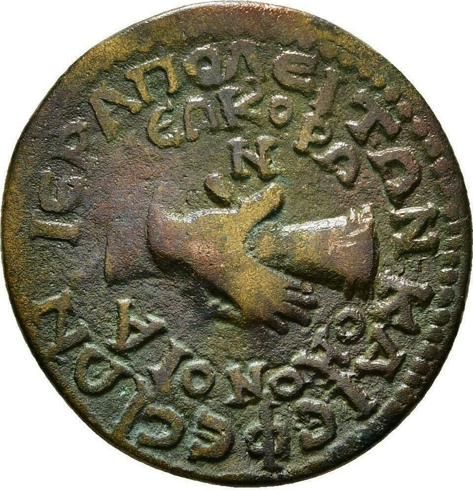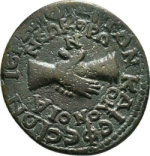 ΙƐΡΑΠΟΛƐΙΤΩΝ Κ ƐΦƐϹΙΩΝ ΝƐΚΟΡΩΝ (sic) ΟΜΟΝΟΙΑ; pierced twice