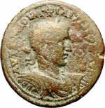 laureate, draped and cuirassed bust of Philip I, right, seen from front