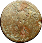 Tyche standing left, holding figure of Zeus Laodiceus and cornucopia