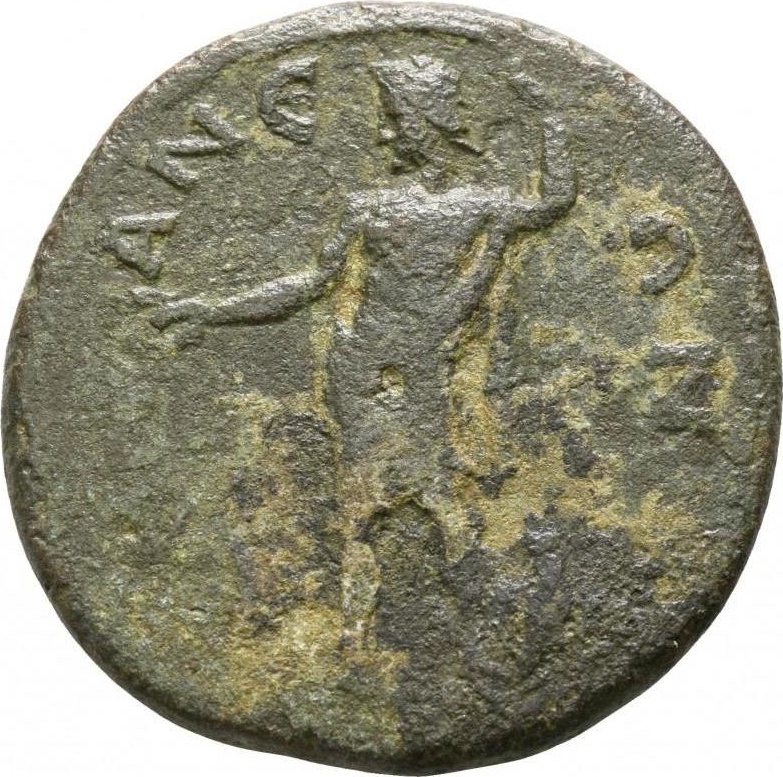 Zeus standing left, holding patera and sceptre; at his feet, eagle