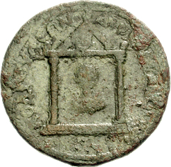 temple with two columns enclosing bust of Zeus Kotanes; eagle in pediment