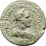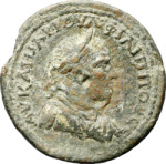 laureate, draped and cuirassed bust of Philip I, right, seen from front
