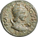 diademed and draped bust of Otacilia Severa, right, crescent at shoulders
