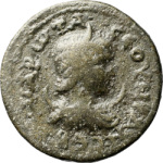 diademed and draped bust of Otacilia Severa, right, crescent at shoulders