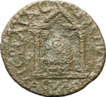 temple with two columns enclosing cult statue of Artemis Pergaia between star and crescent; in pediment, eagle |