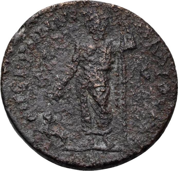 Dionysus standing left, holding cantharus and thyrsus; at his feet, panther |