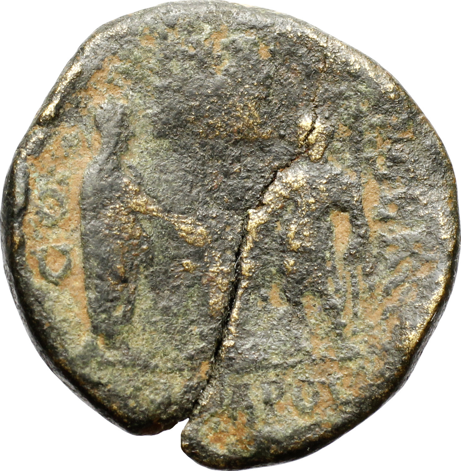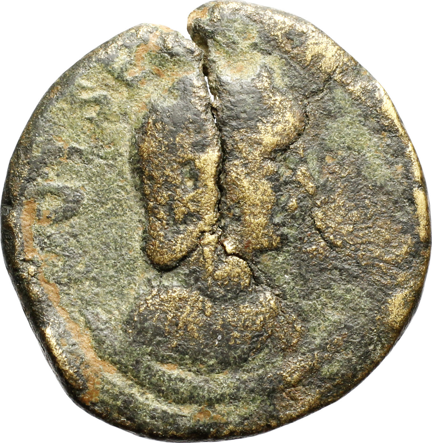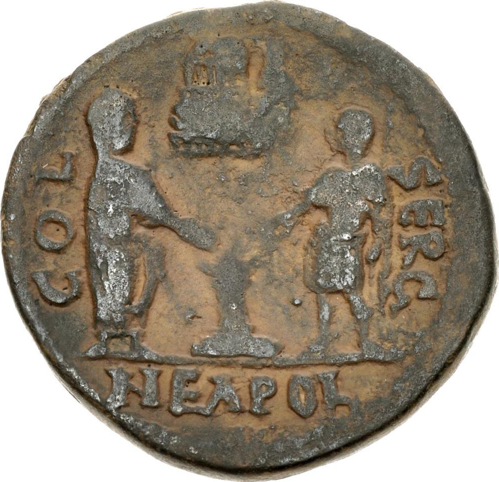 Philip I and Philip II, one togate and one in military dress, standing, facing each other, holding holding patera over altar (between them) and sceptre; above, Mount Gerizim