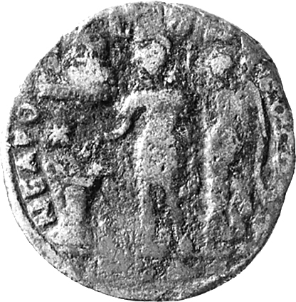 Philip II (or Philip I?) standing left, holding patera over altar and sceptre; behind, Victory standing left, crowning with laurel wreath; in upper left, Mount Gerizim with start below