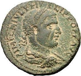 laureate, draped and cuirassed bust of Philip I, right, seen from rear