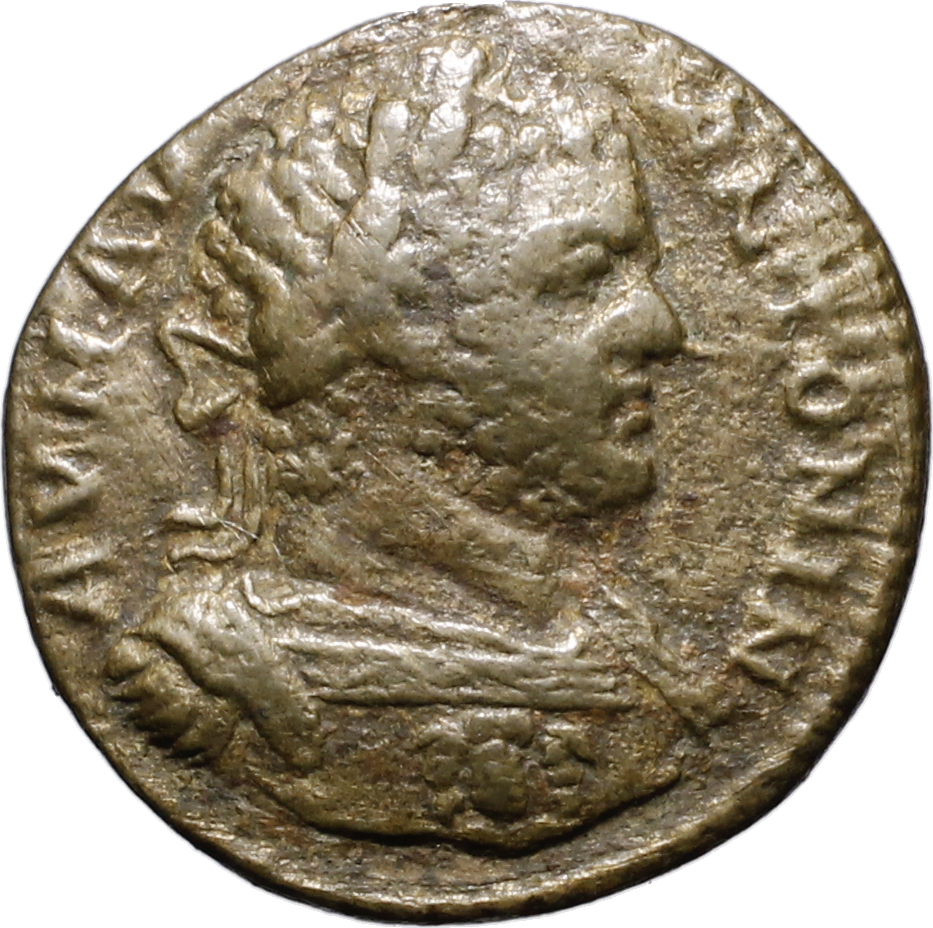 laureate and cuirassed bust of Caracalla, right, seen from front, with gorgoneion on cuirass
