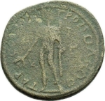 Apollo standing left, quiver at shoulder, holding branch and chlamys |