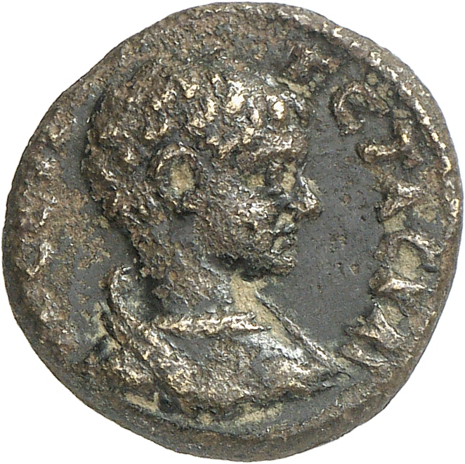bare-headed and cuirassed bust of Geta, right, seen from front