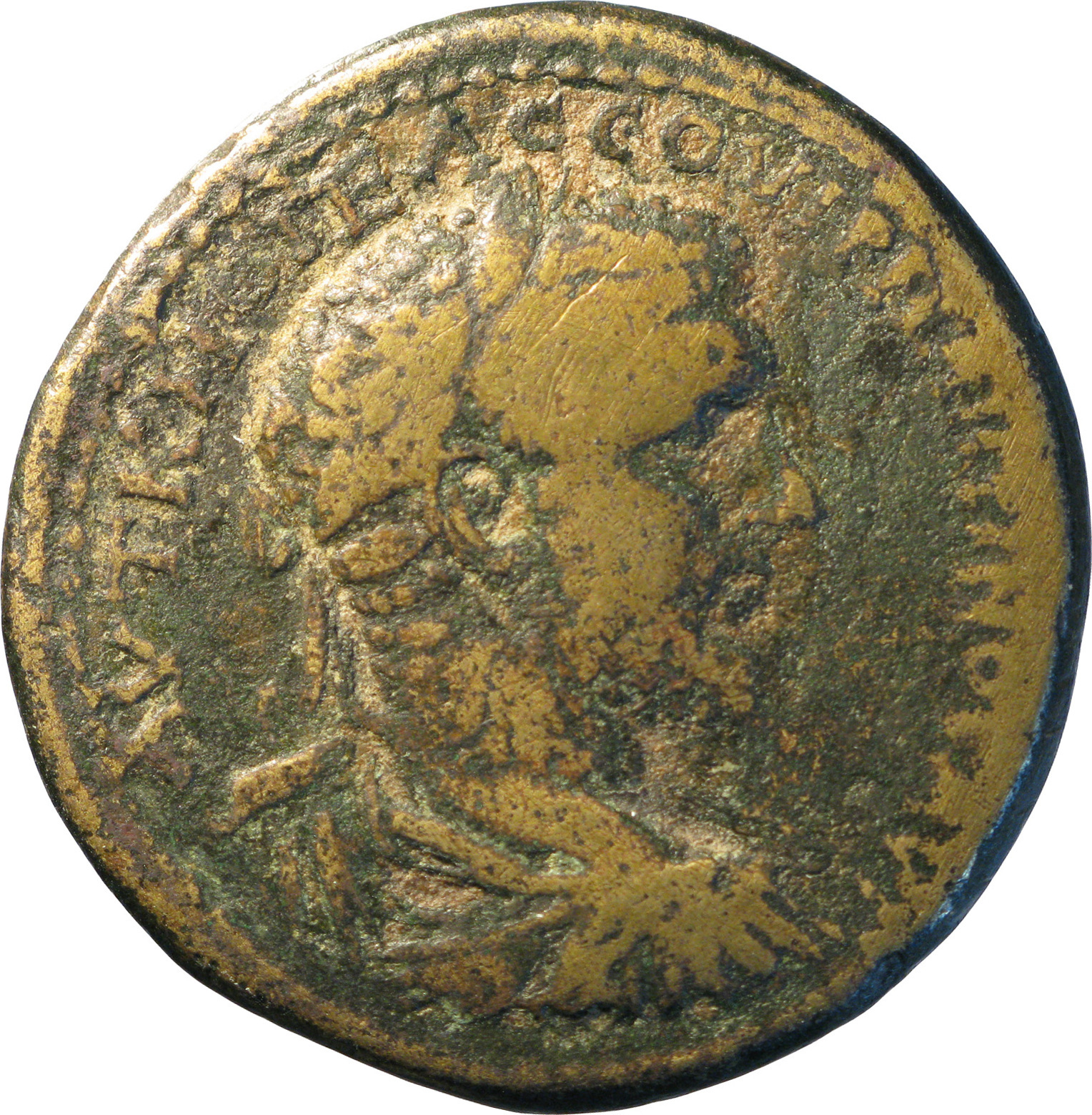 laureate, draped and cuirassed bust of Macrinus, right, seen from rear |