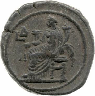 Dikaiosyne seated left, holding scales and cornucopia