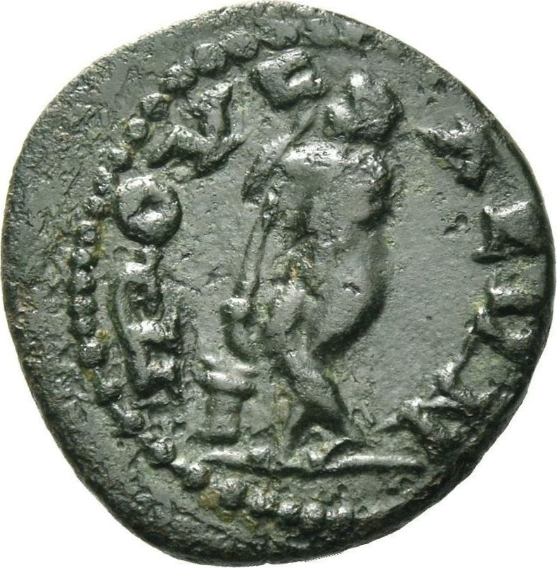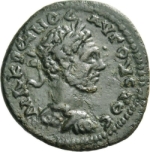 laureate, darted and cuirassed bust of Macrinus, right, seen from rear