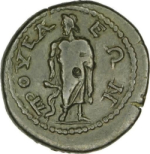 Asclepius standing facing, head left, with serpent-staff