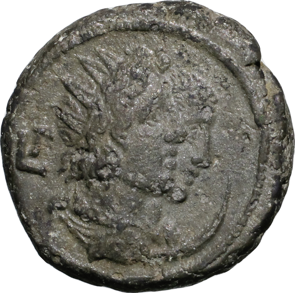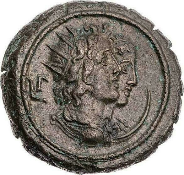 conjoined bust of Helios, radiate and draped, with bust of Selene, draped, with crescent, right