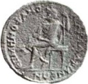 Sarapis seated left, resting on sceptre with his left hand; at his feet, Cerberus |