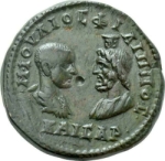 confronted busts of Philip II, bare-headed, draped and cuirassed, right, seen from rear, and Sarapis, draped, left