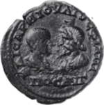 confronted busts of Philip II, bare-headed, draped and cuirassed, right, seen from rear, and Sarapis, draped, left
