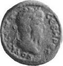 Zeus standing facing, head left, his right hand resting on sceptre, his left on his hip