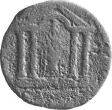 temple with four columns and rounded pediment enclosing cult statue of Samian Hera