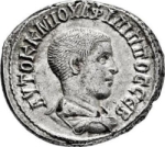 The obverse shows an interesting error of engraver: the inscription refers to Philip I, while the bust is that of Philip II (bare-headed, as Caesar).
