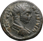 laureate and cuirassed bust of Caracalla, right, seen from rear