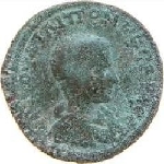 Sandan standing left, on horned lion, enclosed in a pyramidal monument covered by round canopy supported by two figures wearing Phrygian cap; on monument, eagle |