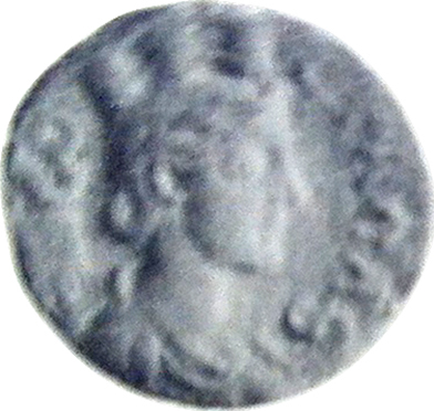 draped bust of Tyche, right; behind her, inscribed (?) vexillum