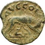 draped bust of Tyche, right; behind her, inscribed vexillum