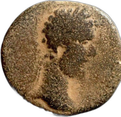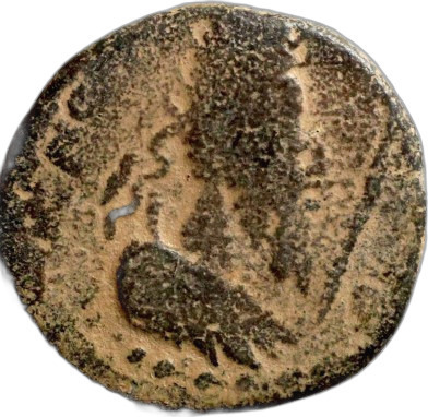 draped bust of Abgar (bearded) wearing diademed tiara with crest of hook-shaped ornaments, right; to right, sceptre