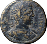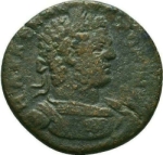 laureate and cuirassed bust of Caracalla, right, seen from front, with gorgoneion on cuirass