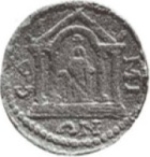 temple with four columns and rounded pediment enclosing cult statue of Samian Hera