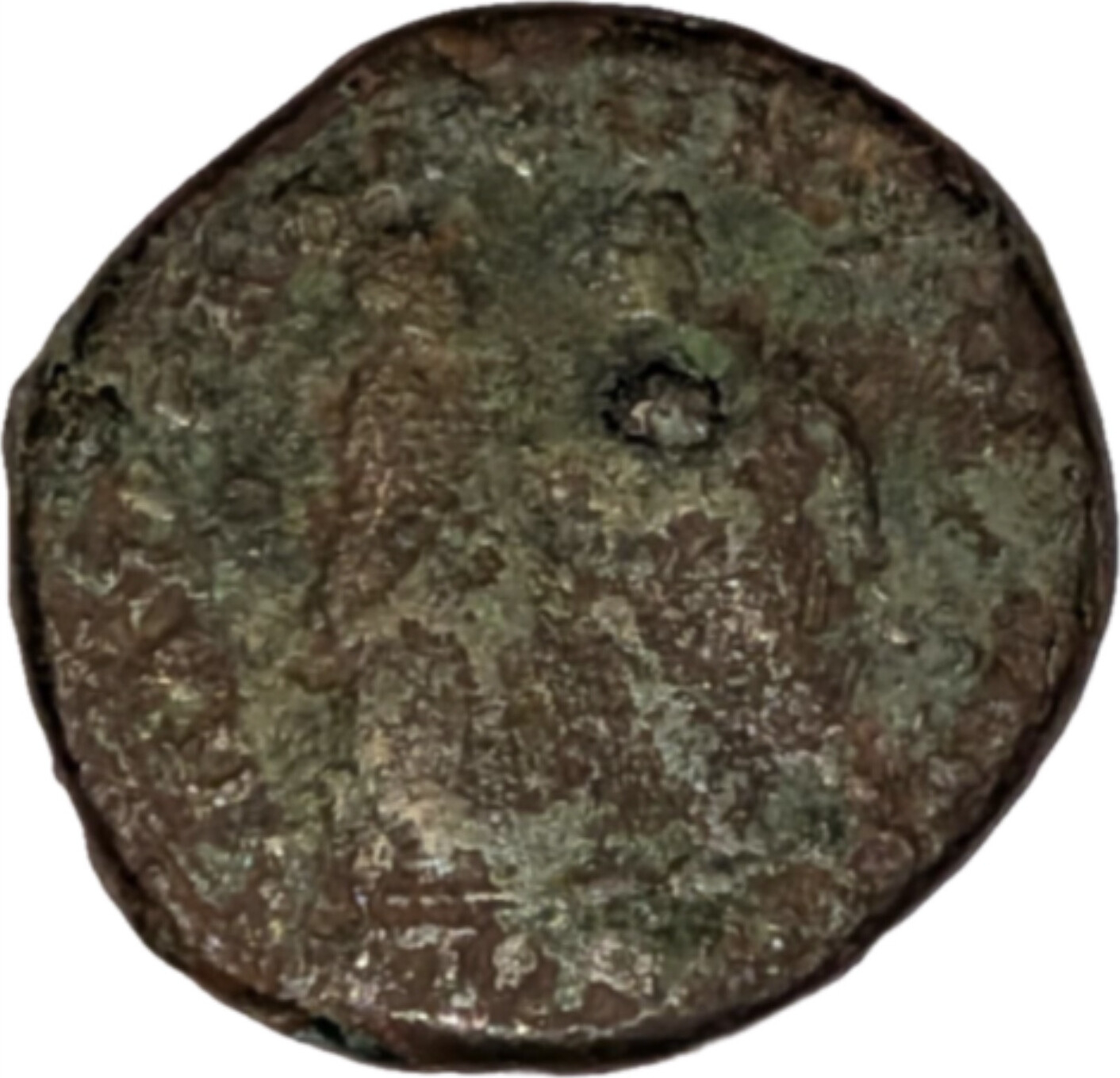 Hygieia standing right, feeding serpent from patera, facing Asclepius standing facing, head left, holding serpent staff |