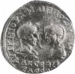 confronted busts of Philip I, laureate, draped and cuirassed, right, seen from rear, and Otacilia Severa, diademed and draped, left