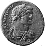 laureate, draped and cuirassed bust of Caracalla, right, seen from rear