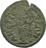 Some of the coins listed under Martin 12 belong to her type 11 (Antonine period, https://rpc.ashmus.ox.ac.uk/coins/4/9223). Martin describes the type as 'Demeter mit Fackel und Ährenbund', which is clearly the case of the Antonine coins, but these coins here seem to show a patera and a sceptre.