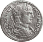 raidiate figure (Caracalla?)standing in quadriga drawn by four elephants left, holding transversal sceptre |