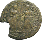 Obv.: GIC 240 (Asclepius standing facing, r. hand on serpent staff) ; broken