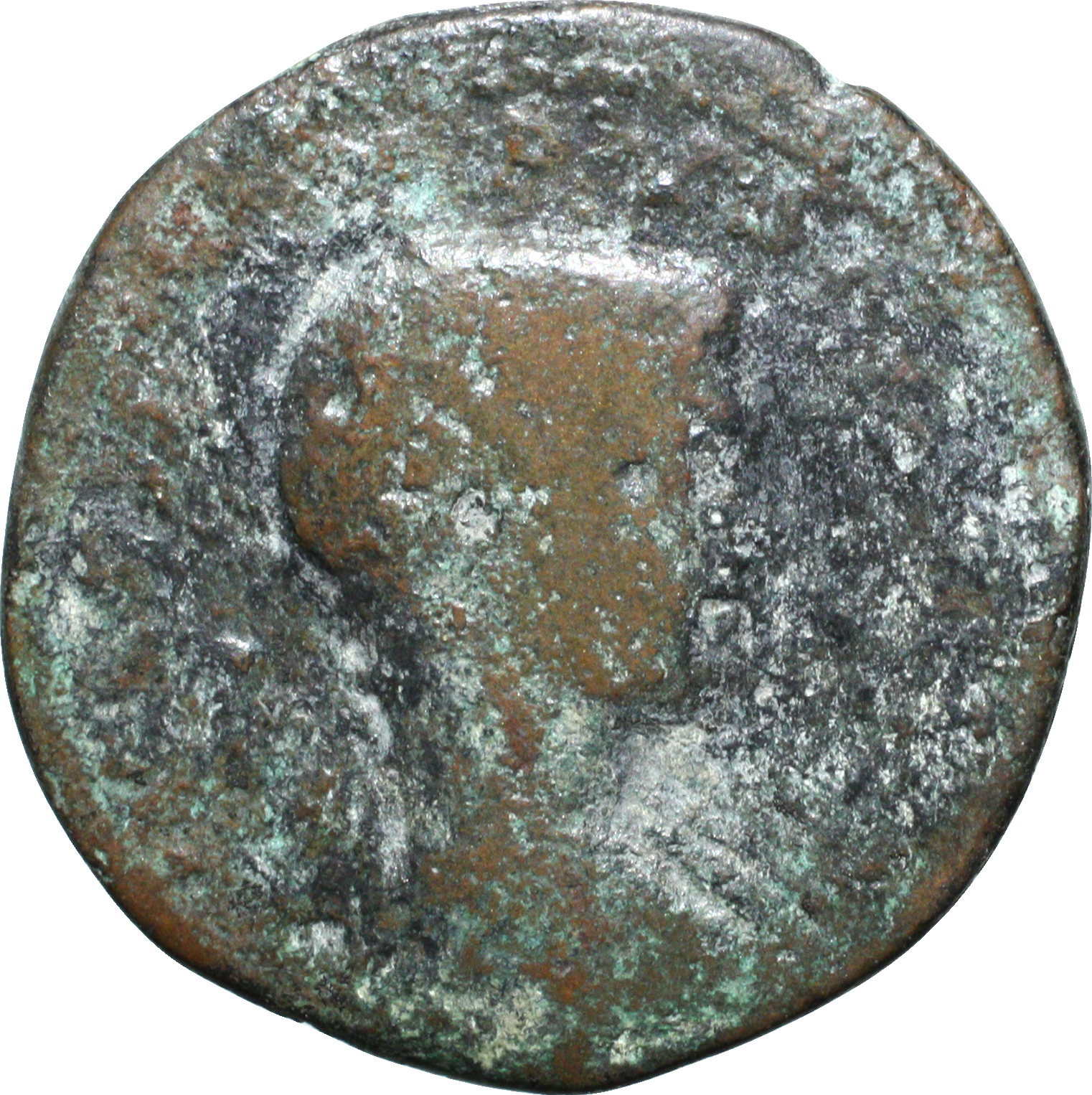 bare-headed, draped and cuirassed bust of Philip II, right, seen from rear