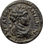 laureate, draped and cuirassed bust of Caracalla, right, seen from rear