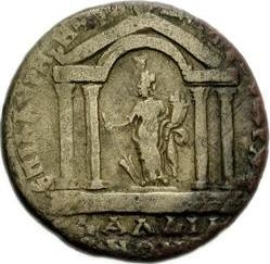 laureate, draped and cuirassed bust of Caracalla, right, seen from front, wearing aegis |