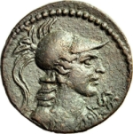four-legged table, sometimes seen in perspective; (below, palm branch;) on top, from left to right, wreath, head of Athena right, owl standing left