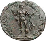 Heracles standing right, holding club and apples of the Hesperides with lion-skin