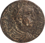 radiate, draped and cuirassed bust of Gallienus, right, seen from rear
