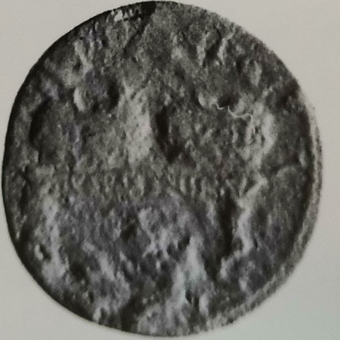 two prize crowns, both inscribed, from each of which emerge two palms, on table, inscribed |