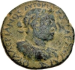 Perseus and Andromeda; on right, Perseus, nude, standing to front, looking left, in left harpa and head of Gorgon; at his feet, sea monster; with his right he grasps right hand of Andromeda, who stands to right, wearing long chiton; between them, circular object (wreath?) |